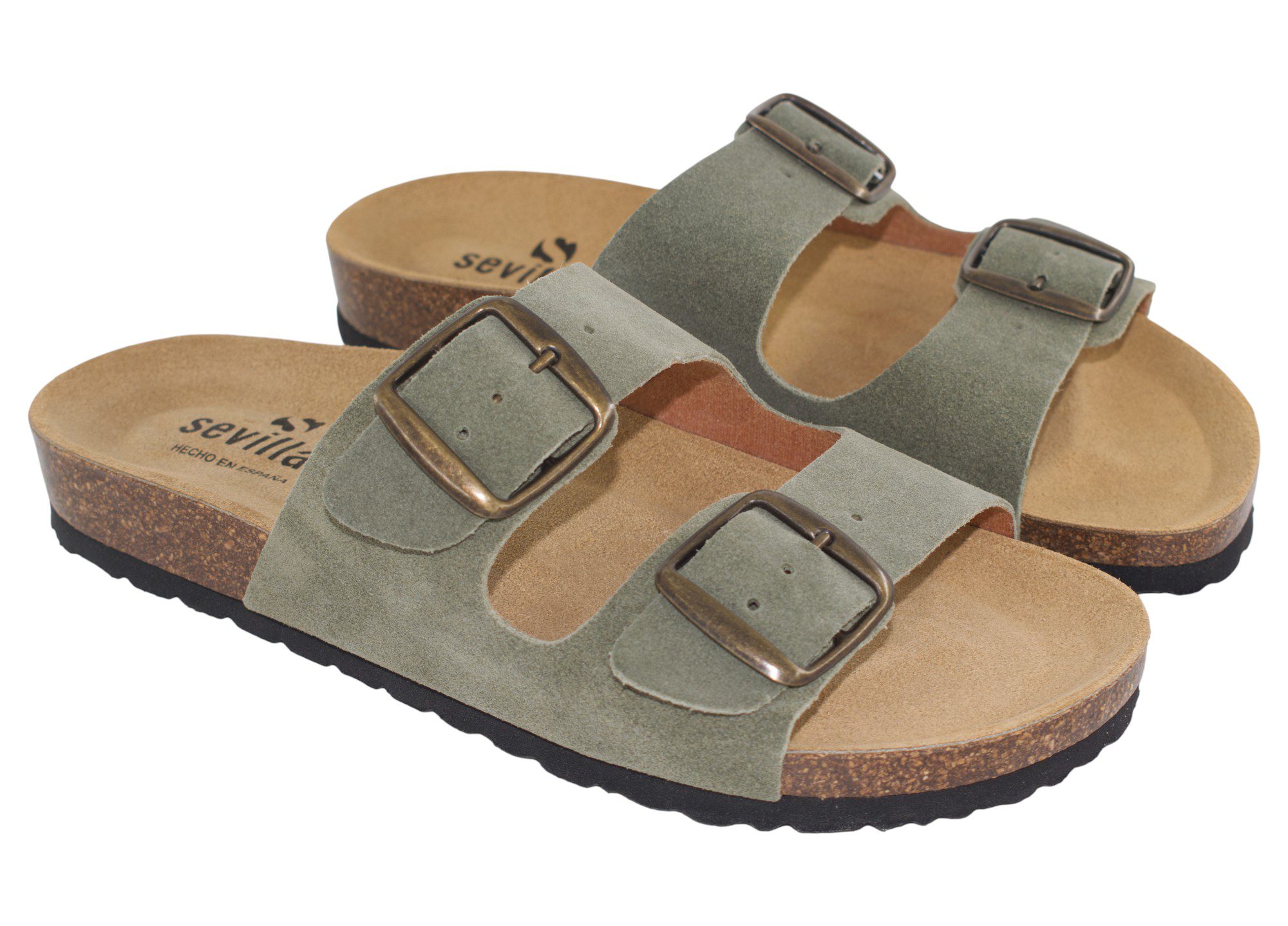 Sandalia Bio dos hebillas piel musgo, frescura y comodidad con un diseño clásico y funcional. Fabricada en piel de alta calidad.