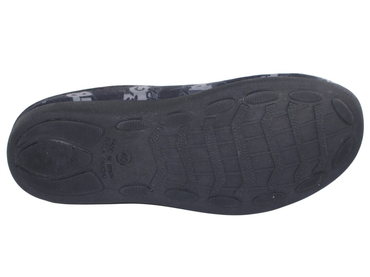 Zapatillas de casa, con suela de caucho (goma) antideslizantes. Ligeras, cómodas, con tejido aterciopelado. Hechas en España.
